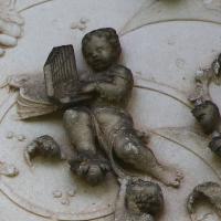 Putti jouant de la flûte et de l'orgue portatif, vers 1500, Pagny, chapelle du château, tombeau de Jean de Longwy |
