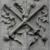 Coq de saint Pierre et Fouets et Colonne de la Flagellation, vers 1549, Saint-André-les-Vergers, Saint-André, portail |