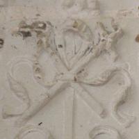 Croix et clous de la Crucifixion, vers 1520-1530, Loudun, Saint-Pierre, façade |