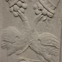 Oiseaux picorant dan un calice rempli de fruits |